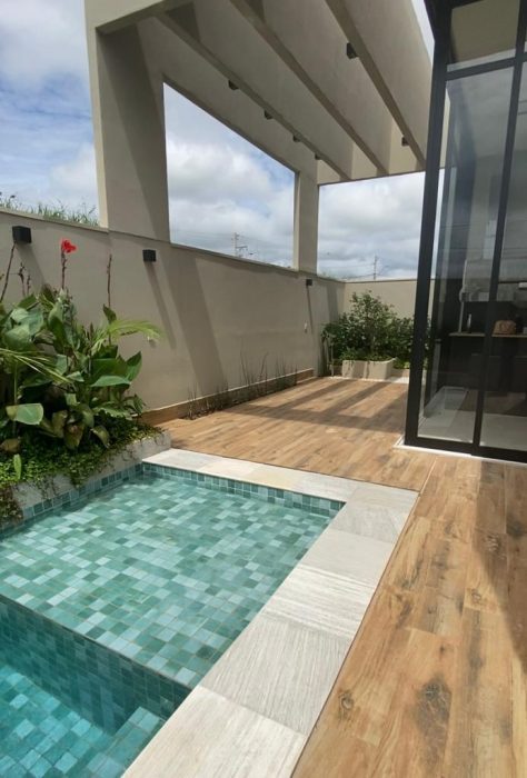 ✅Sala ampla integrada com cozinha, área gourmet, área externa com piscina
