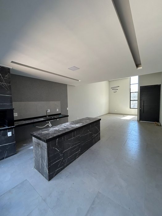 – Cozinha gourmet com churrasqueira e ilha planejada em mármore