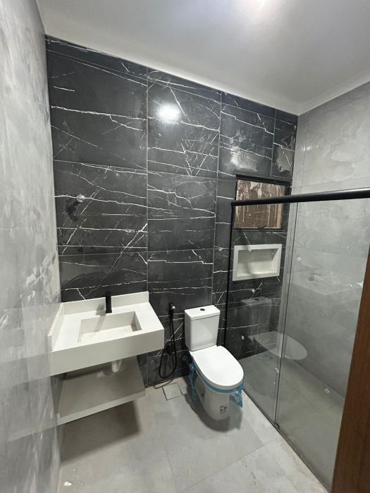 – porcelanato delta na casa toda, acetinado no chão e polido nas paredes.