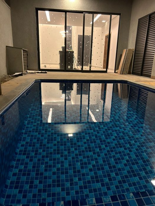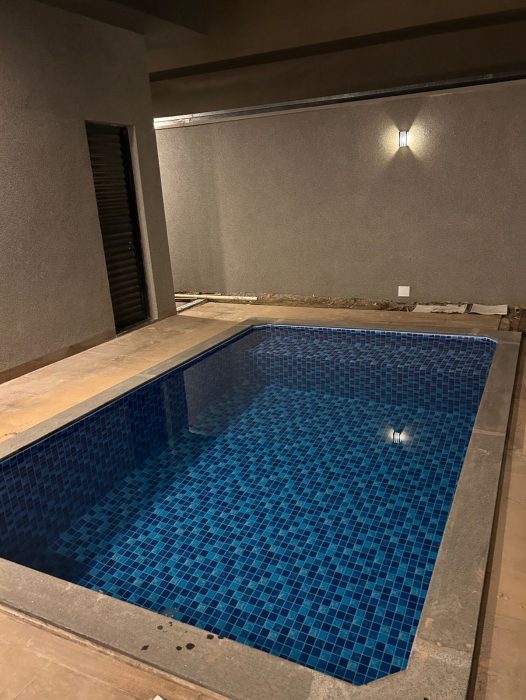 – 3 quartos sendo 1 suite com closet e com saída para piscina